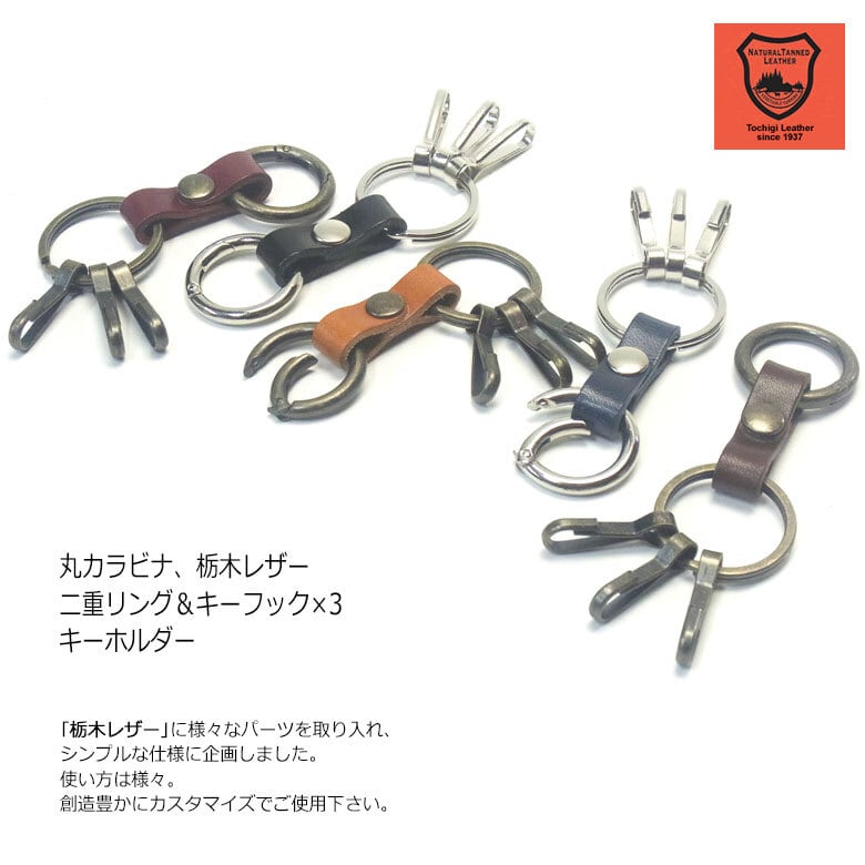 栃木レザー仕様 使いやすいパーツを装備したキーホルダーです。上質なツヤのある革に上品で高級な金具がポイント。デザインと機能性を考えて作られたアイテムです。