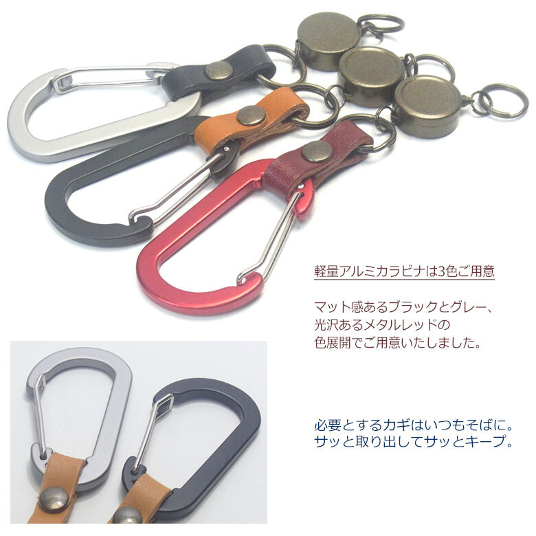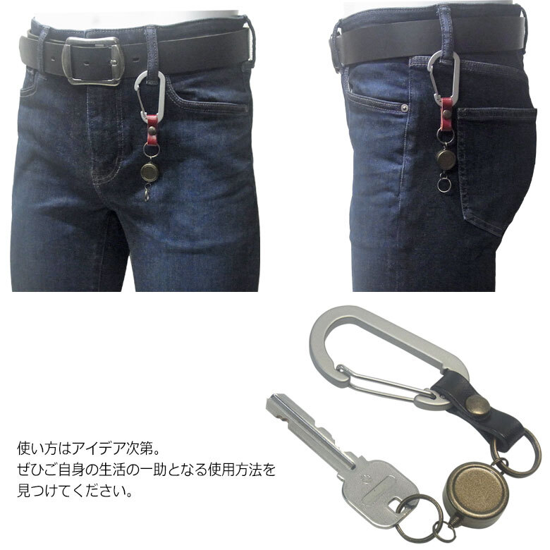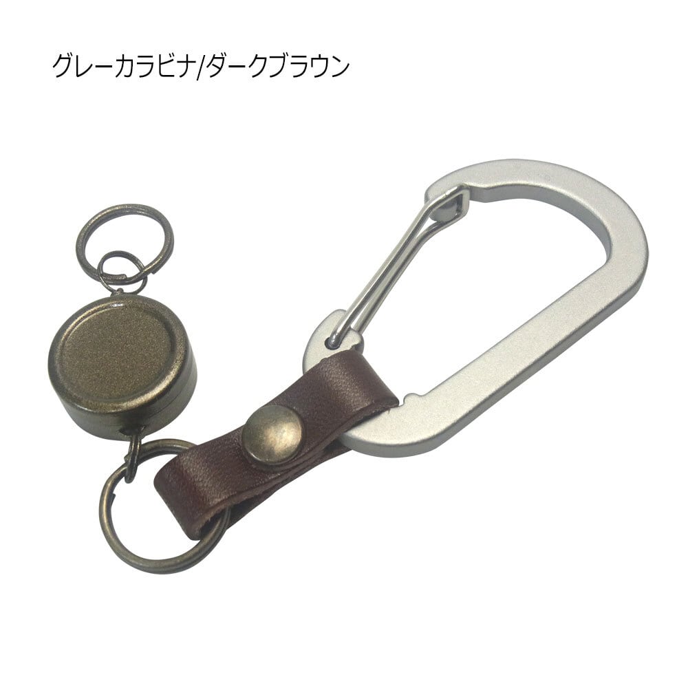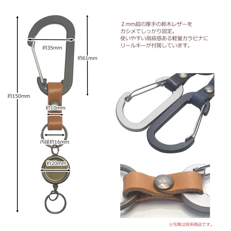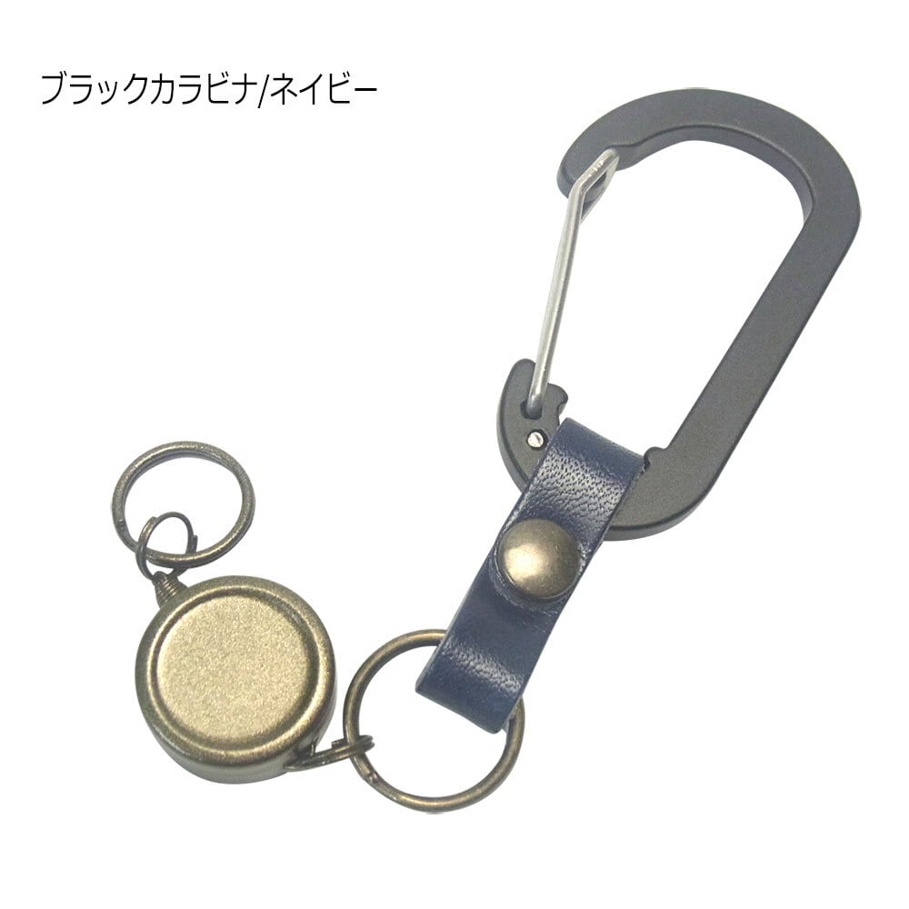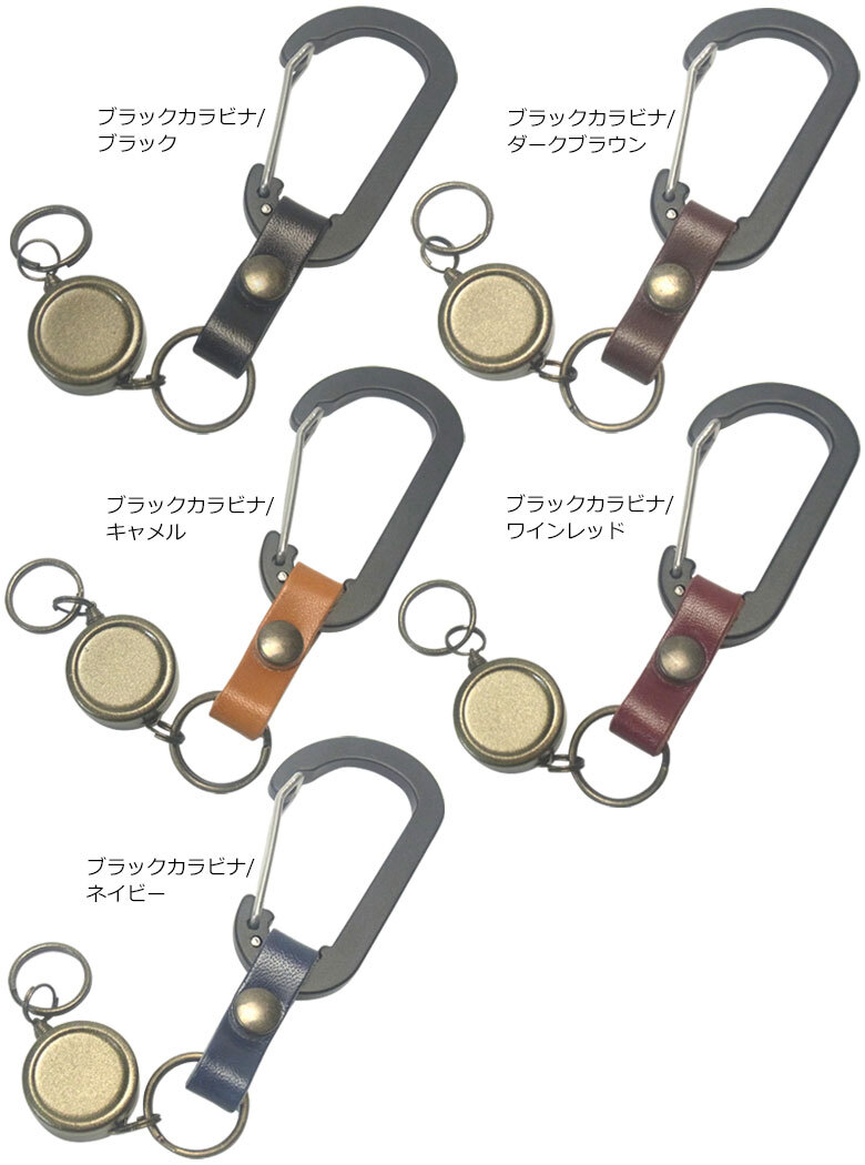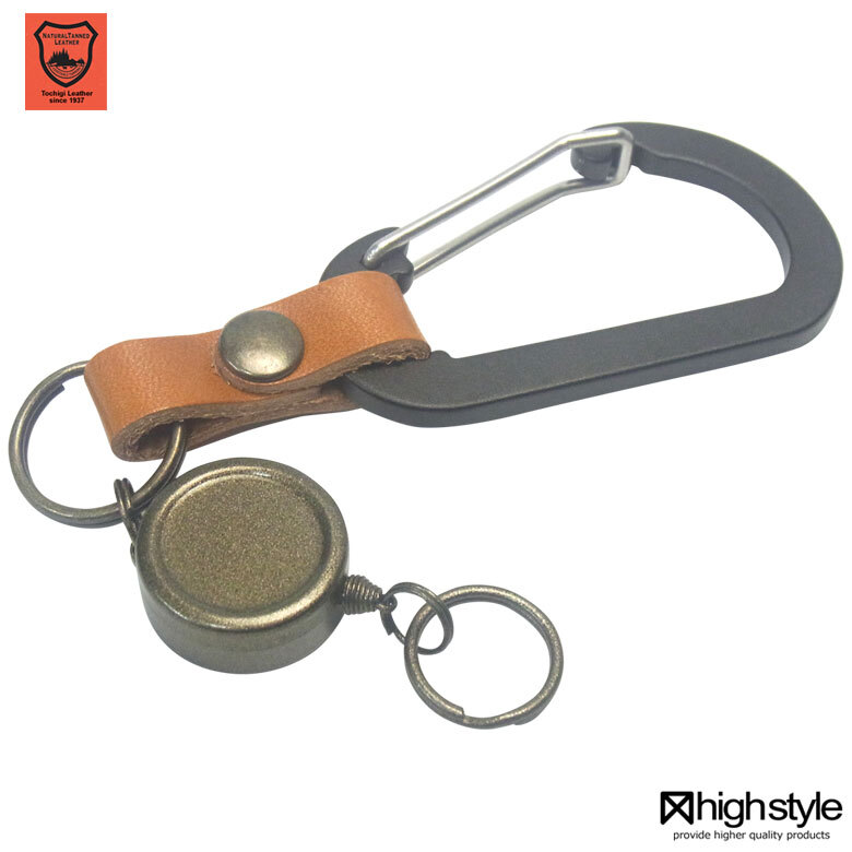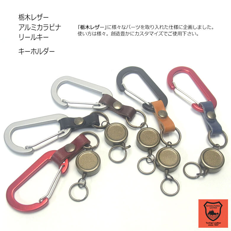 栃木レザー 軽量アルミカラビナ アンティークカラー リールキー キーホルダー