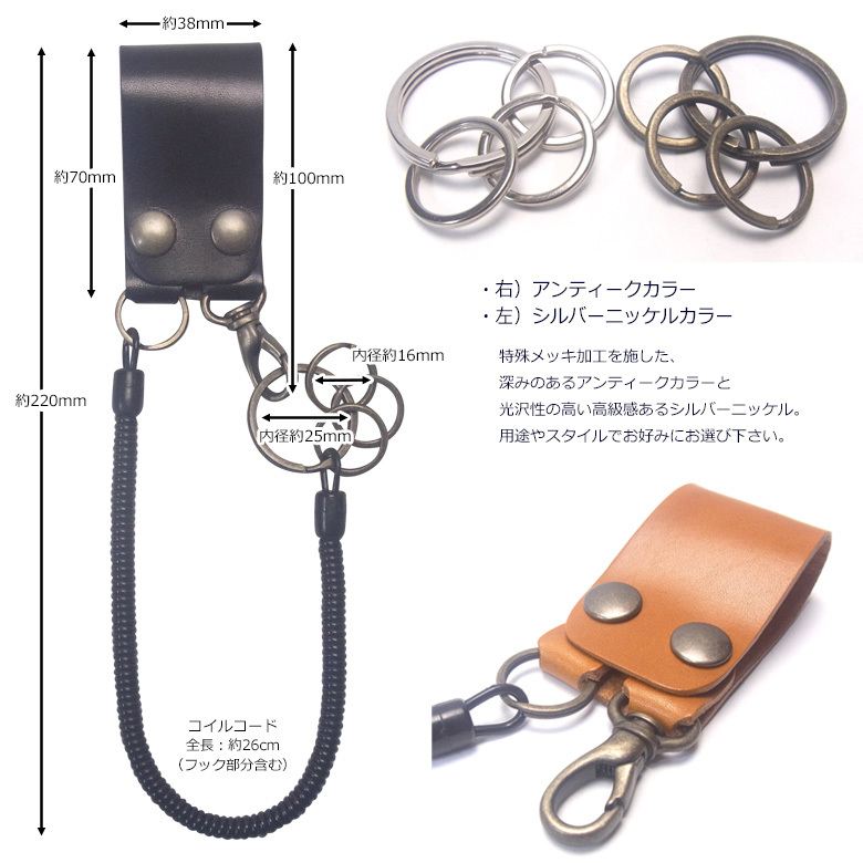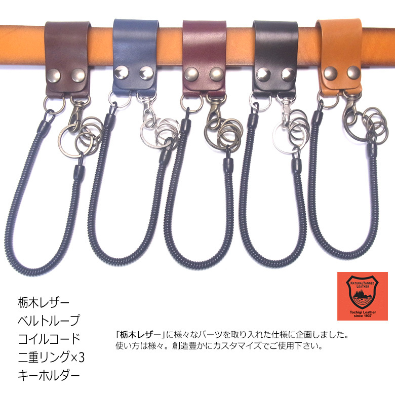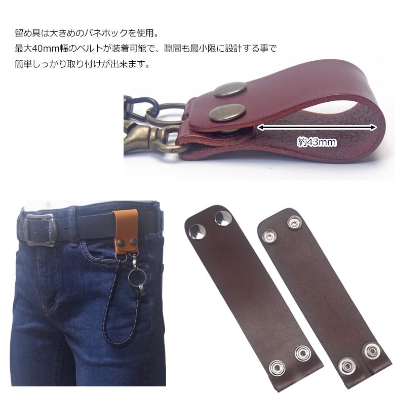 栃木レザー使用 2ボタンタイプの幅広デザイン、ベルトループキーホルダーです。上質なツヤのある革に上品で高級な金具がポイント。デザインと機能性を考えて作られたアイテムです。