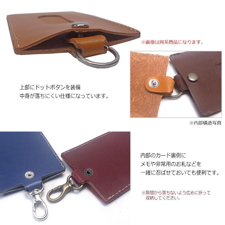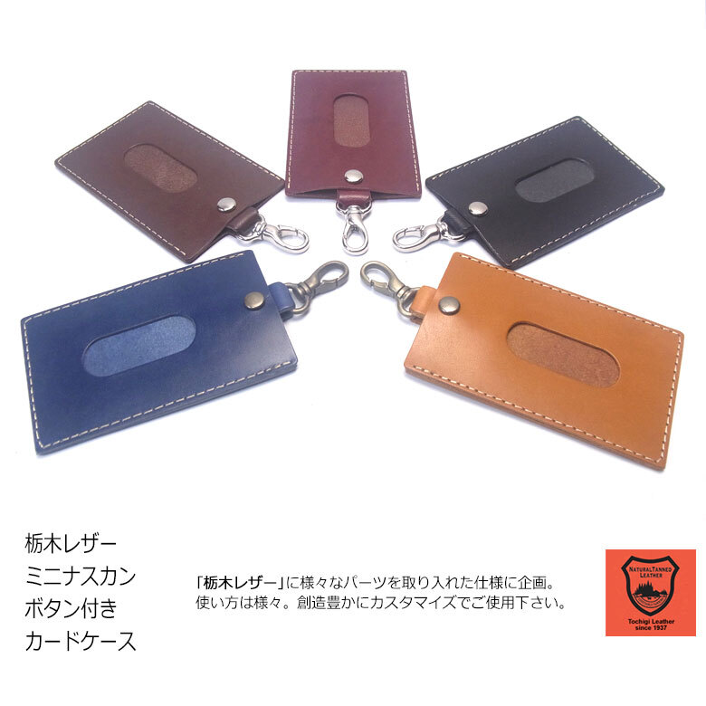 栃木レザー使用 ボタンが付いたシンプルタイプのパスケースです。上質なツヤのある革に上品で高級な金具がポイント。デザインと機能性を考えて作られたアイテムです。