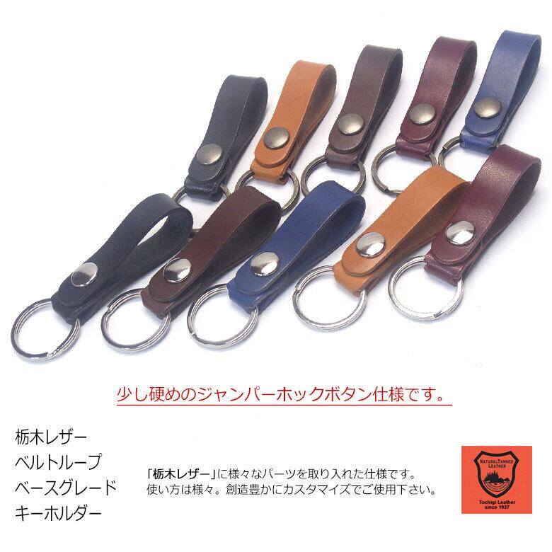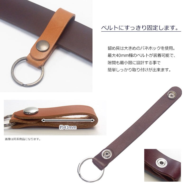 栃木レザー使用 アルミカラビナとコイルコードを装備したベルトループキーホルダーです。上質なツヤのある革に上品で高級な金具がポイント。デザインと機能性を考えて作られたアイテムです。