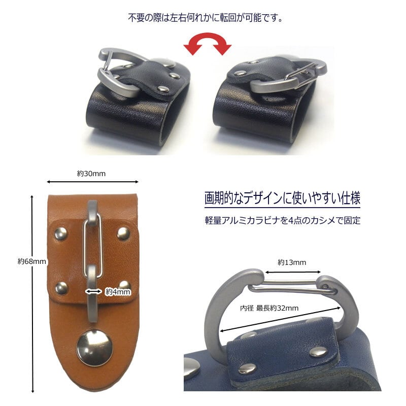 栃木レザー仕様 使いやすいアルミカラビナを装備したシンプルタイプのベルトループキーホルダーです。キーケース、アクセサリー、マスクホルダーとしてもお使い頂けます。上質なツヤのある革に上品で高級な金具がポイント。デザインと機能性を考えて作られたアイテムです。